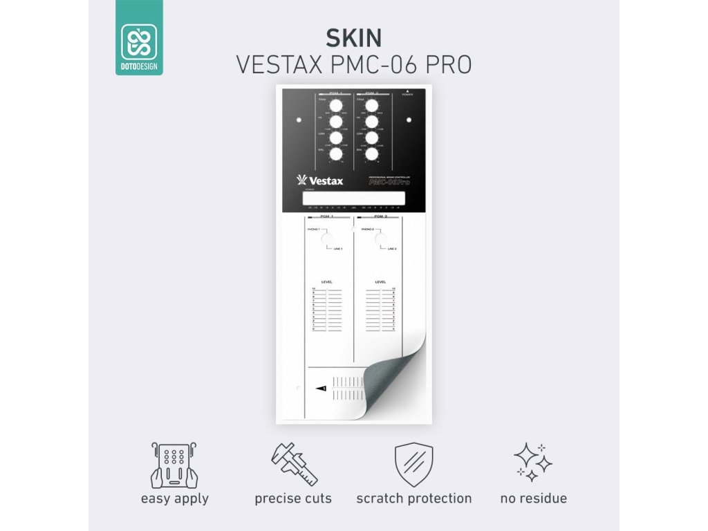 Naklejka na mikser Vestax PMC-06 Pro (A - VCA) w wersji COLORS DVS, kolor white (biały).