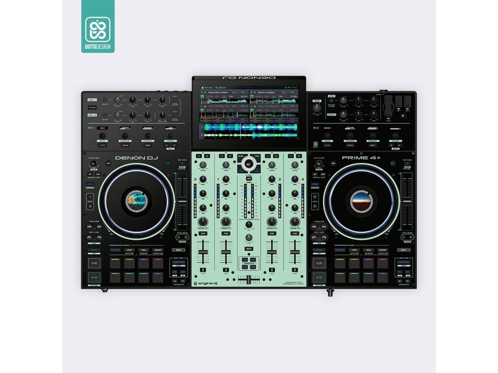 Naklejka na kontroler MIDI Denon Prime 4+ w wersji COLORS, kolor aquamarine (akwamarynowy).