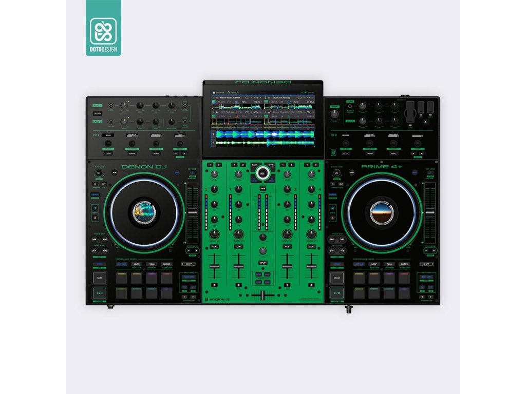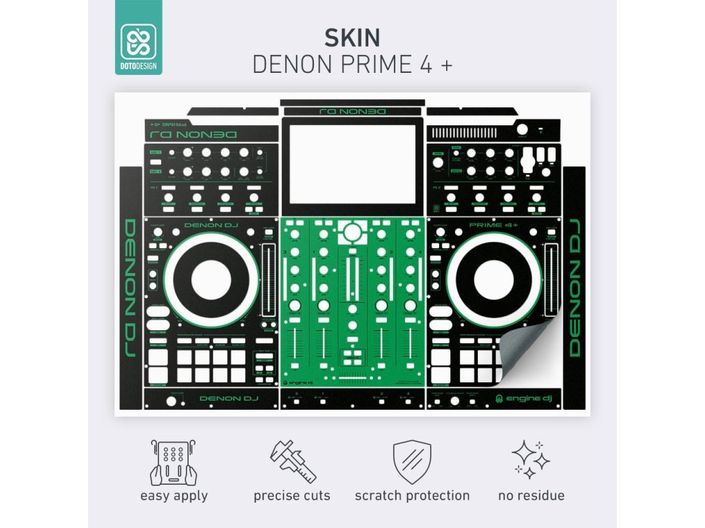 Naklejka na kontroler MIDI Denon Prime 4+ w wersji COLORS, kolor green (zielony).