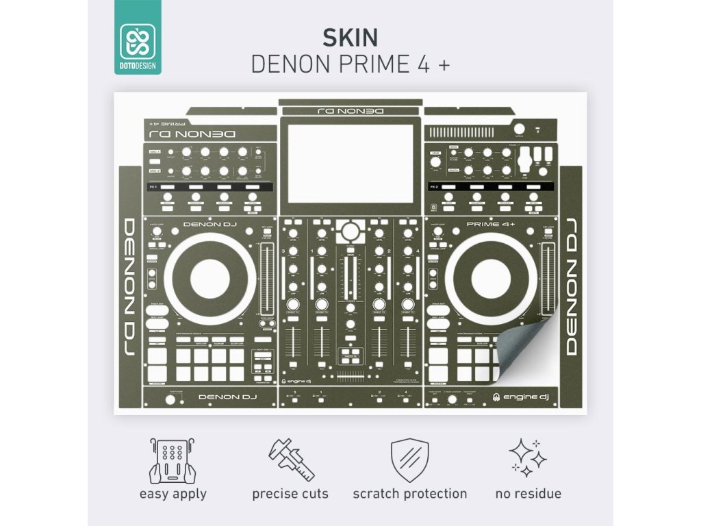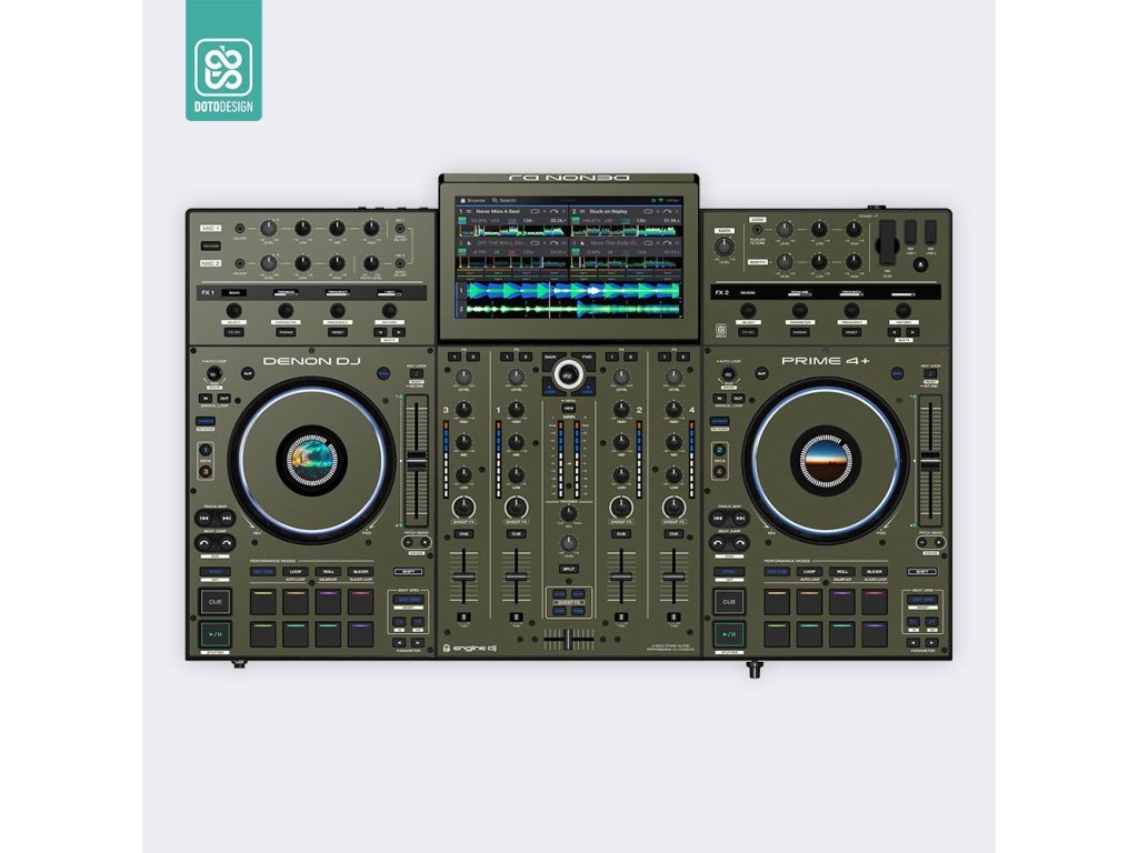 Naklejka na kontroler MIDI Denon Prime 4+ w wersji FULL COLORS, kolor army green (wojskowa zieleń).