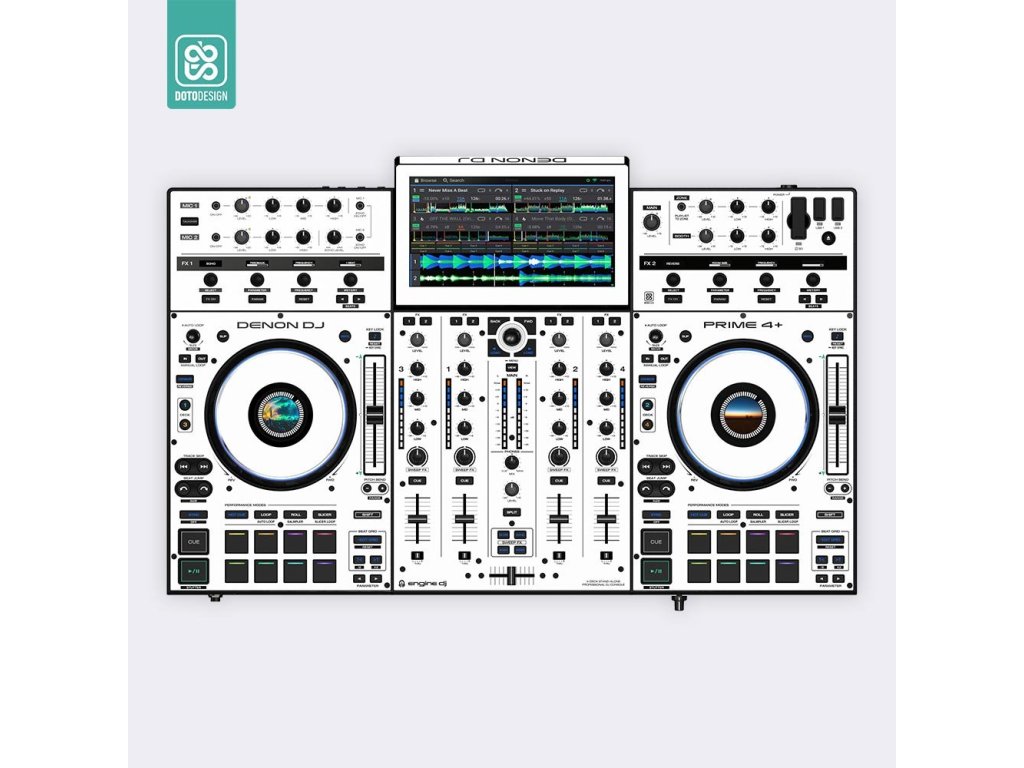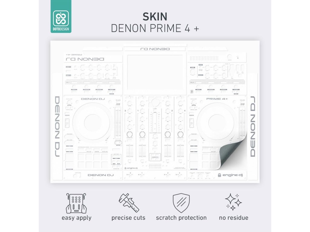 Naklejka skin na kontroler MIDI Denon Prime 4+ w wersji FULL COLORS, kolor biały.