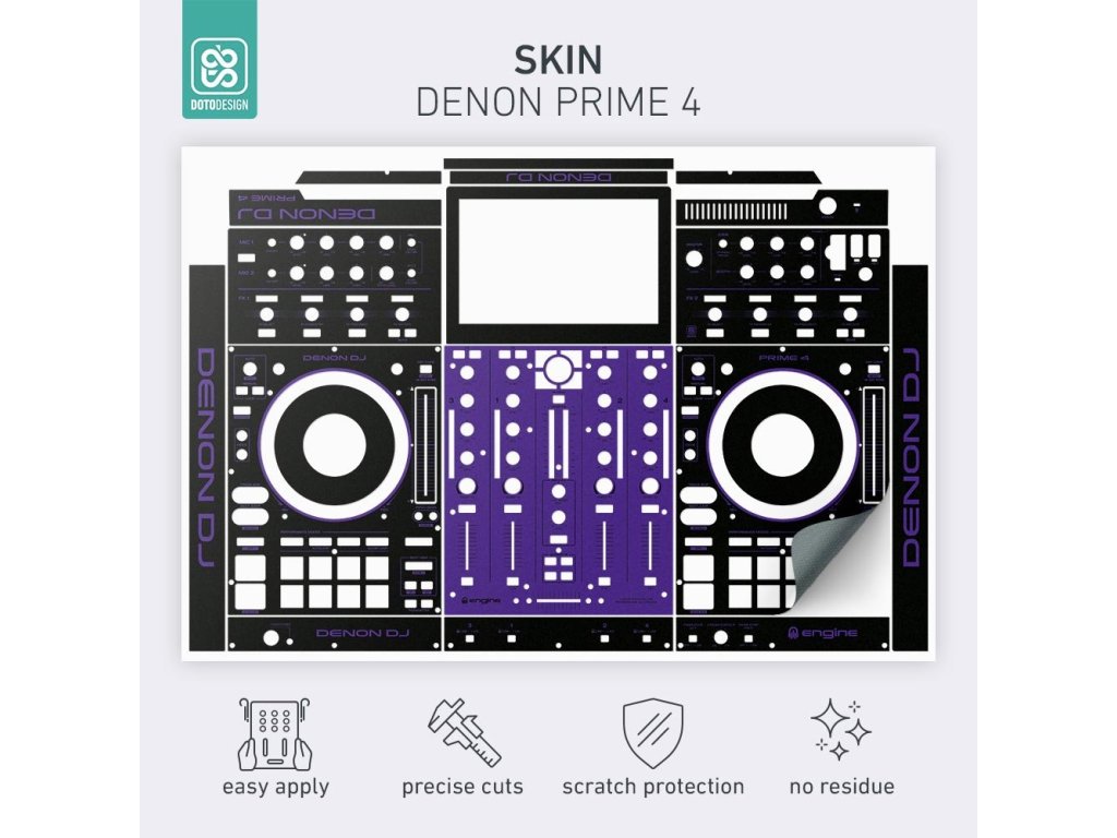 Naklejka na kontroler MIDI Denon Prime 4 w wersji COLORS, kolor purple (fioletowy).