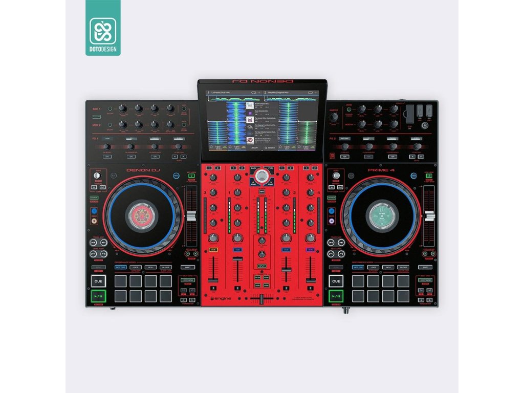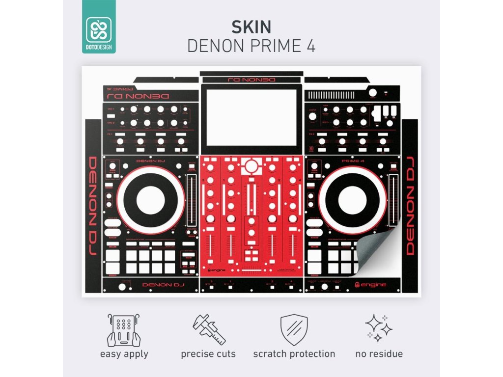 Naklejka na kontroler MIDI Denon Prime 4 w wersji COLORS, kolor red (czerwony).