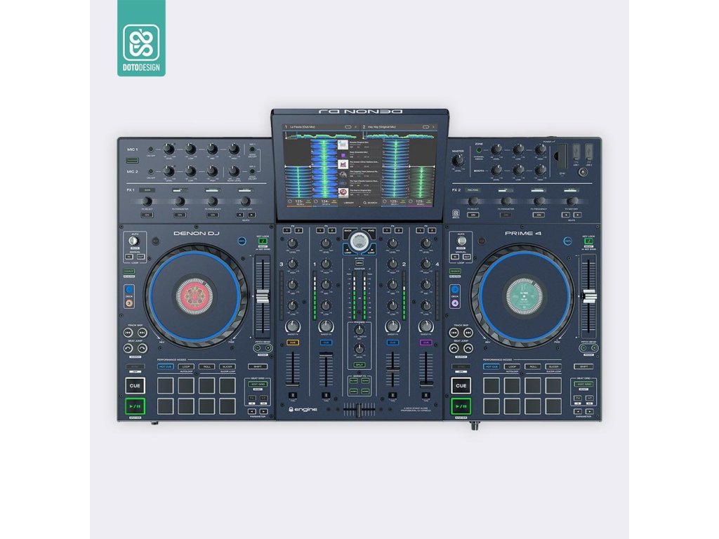 Naklejka na kontroler MIDI Denon Prime 4 w wersji FULL COLORS, kolor midnight blue (północny niebieski).