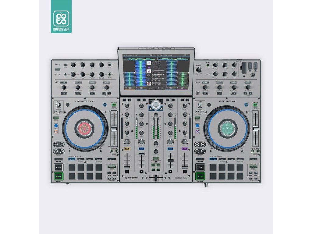 Naklejka na kontroler MIDI Denon Prime 4 w wersji FULL COLORS, kolor nardo grey (szary).