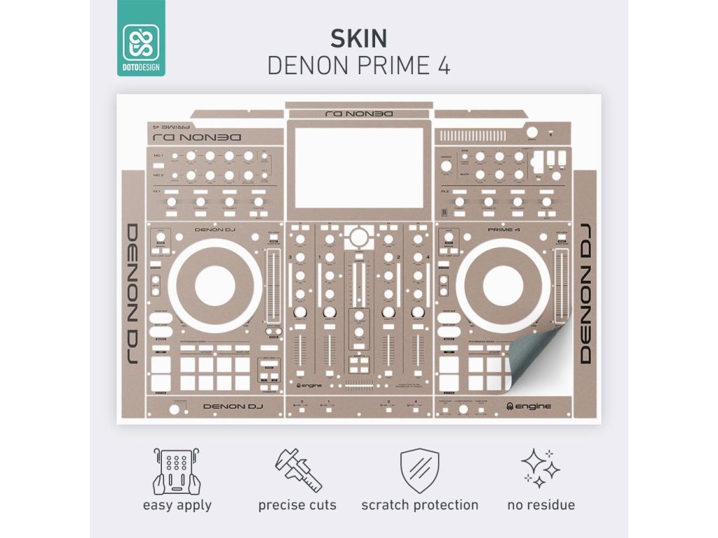 Naklejka na kontroler MIDI Denon Prime 4 w wersji FULL COLORS, kolor stone beige (beżowy).