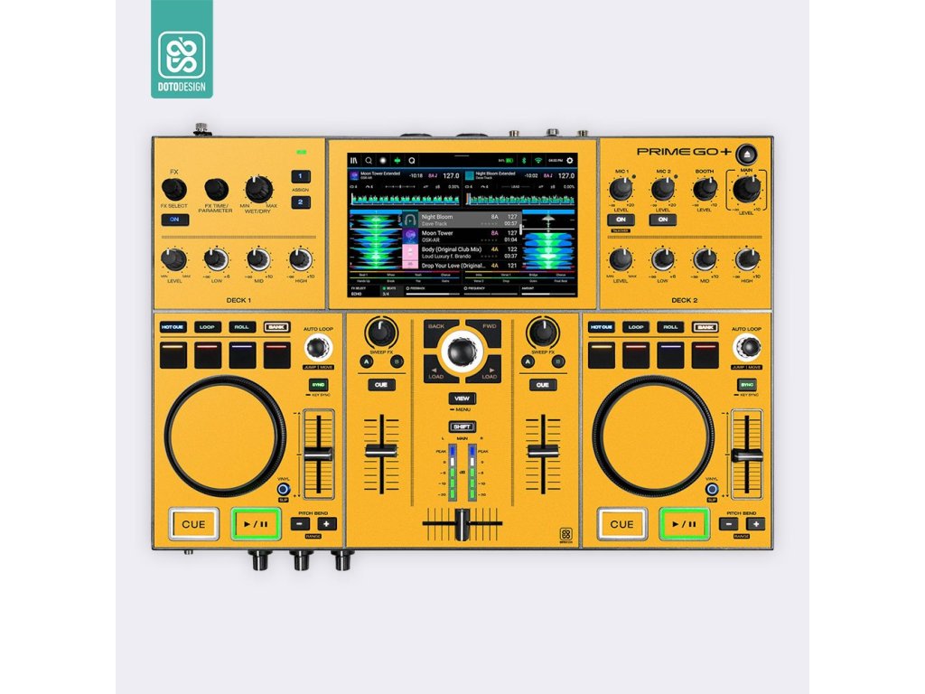 Naklejka na kontroler MIDI Denon DJ Prime GO+ w wersji FULL COLORS dark yellow (ciemnożółty).