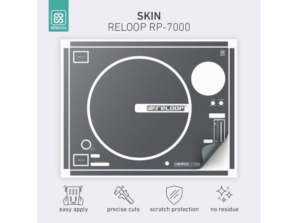 Naklejka na gramofon DJ Reloop RP-7000 w wersji FULL COLORS, kolor graphite grey (grafitowa szarość).