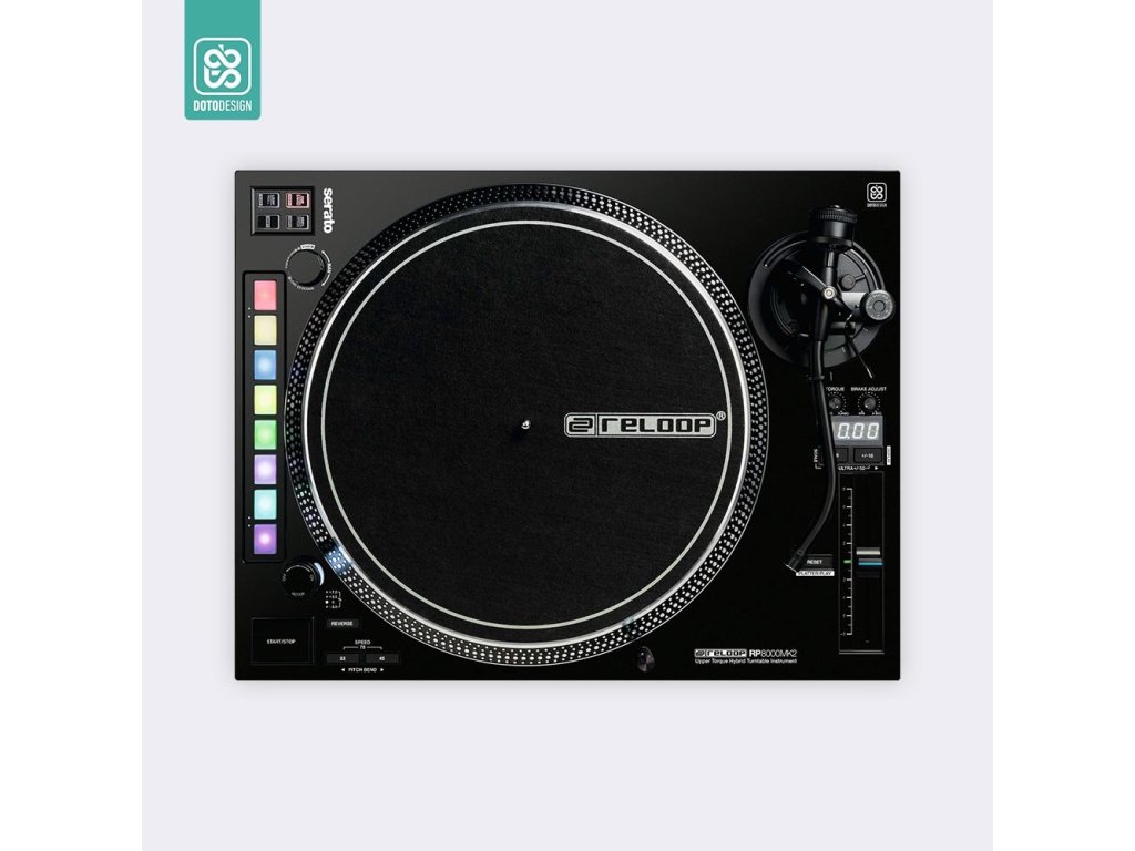 Naklejka na gramofon DJ Reloop RP-8000 MK2 w wersji FULL COLORS, kolor black (czarny).