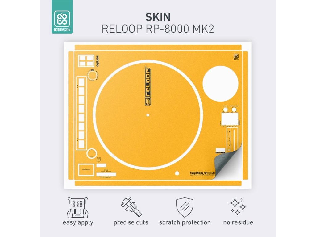 Naklejka na gramofon DJ Reloop RP-8000 MK2 w wersji FULL COLORS, kolor dark yellow (ciemnożółty).
