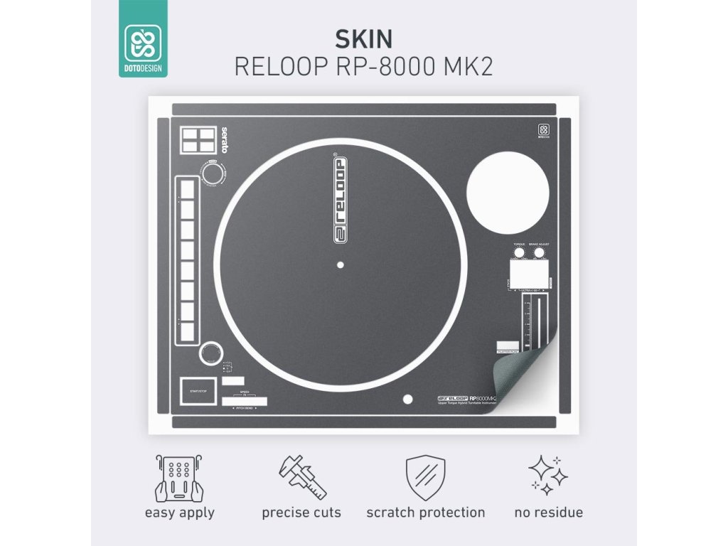 Naklejka skin na gramofon DJ Reloop RP-8000 MK2 w wersji FULL COLORS, kolor graphite grey (grafitowa szarość).