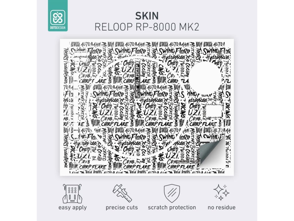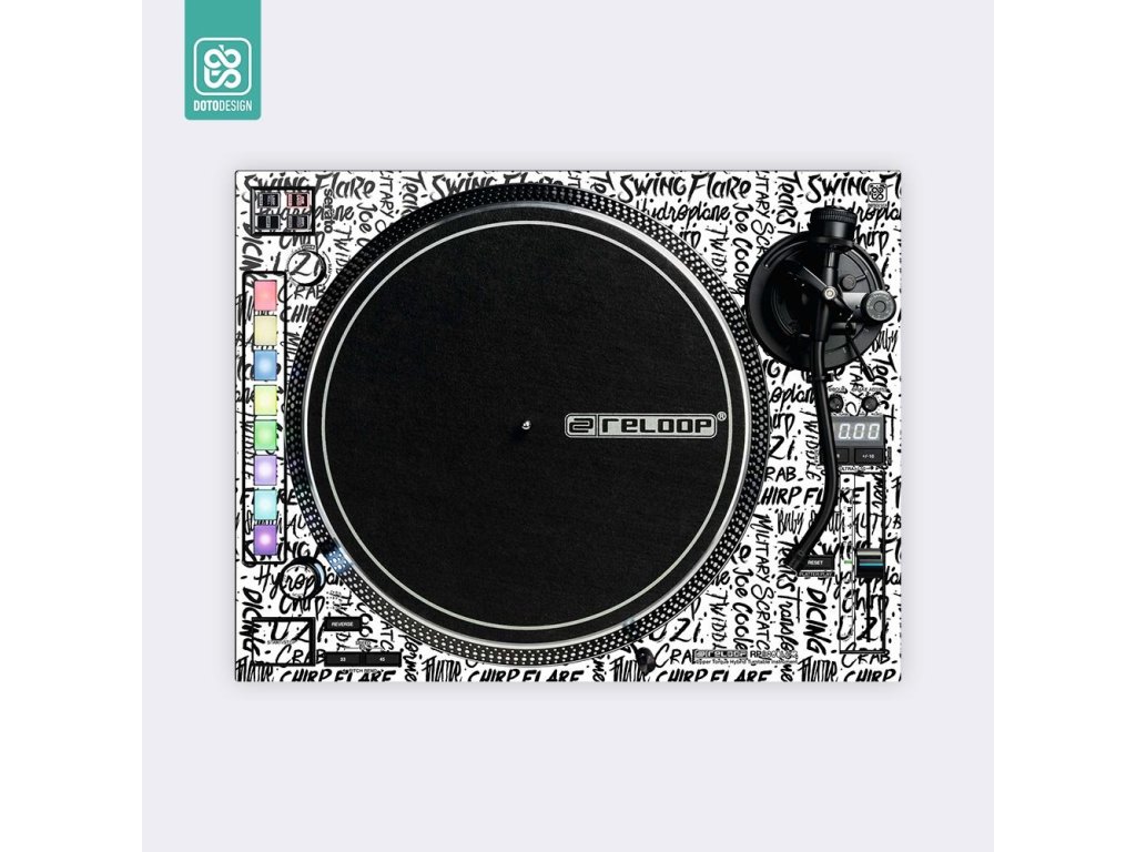 Naklejka na gramofon DJ Reloop RP-8000 MK2 w stylu SCRATCH STYLE, kolor white (biały).