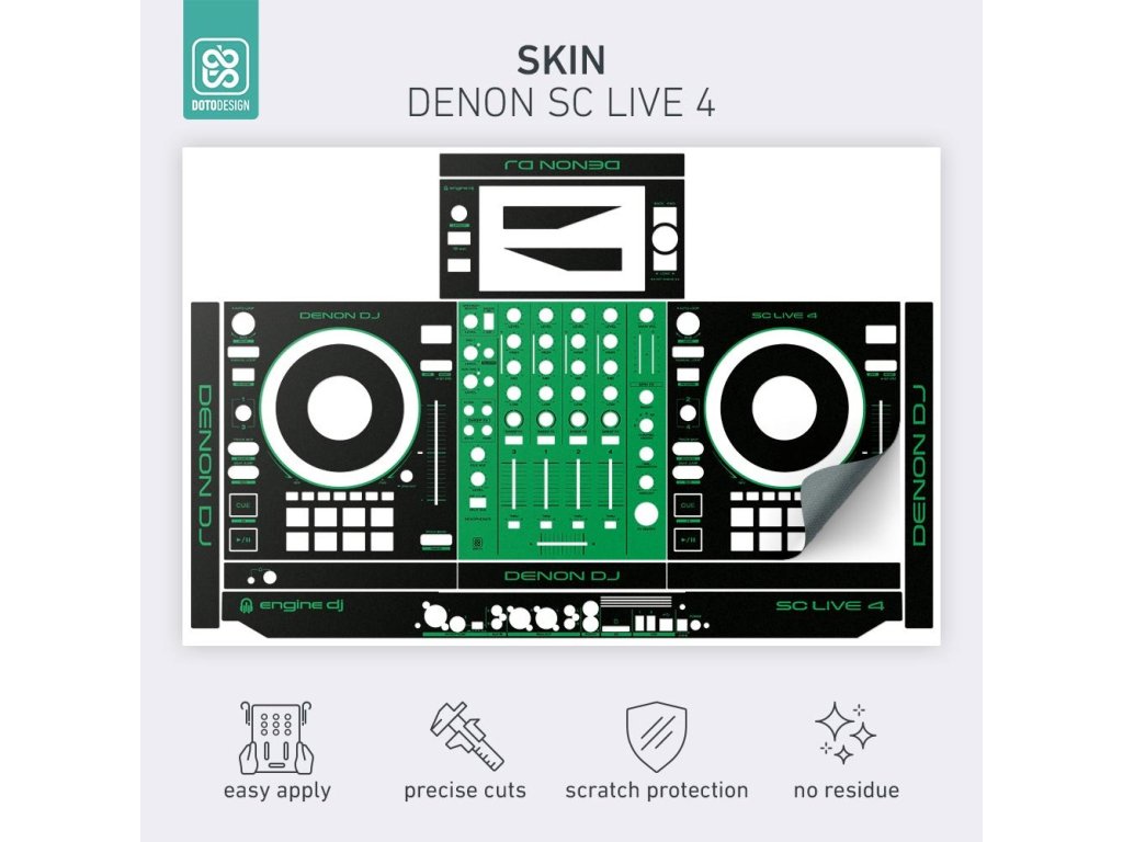 Naklejka na kontroler MIDI Denon SC Live 4 w wersji COLORS, kolor green (zielony).
