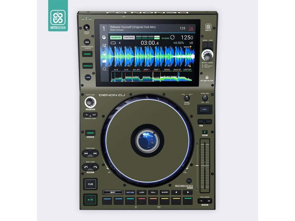 Naklejka na odtwarzacz DJ Denon SC6000 Prime w wersji FULL COLORS, kolor army green (wojskowa zieleń).
