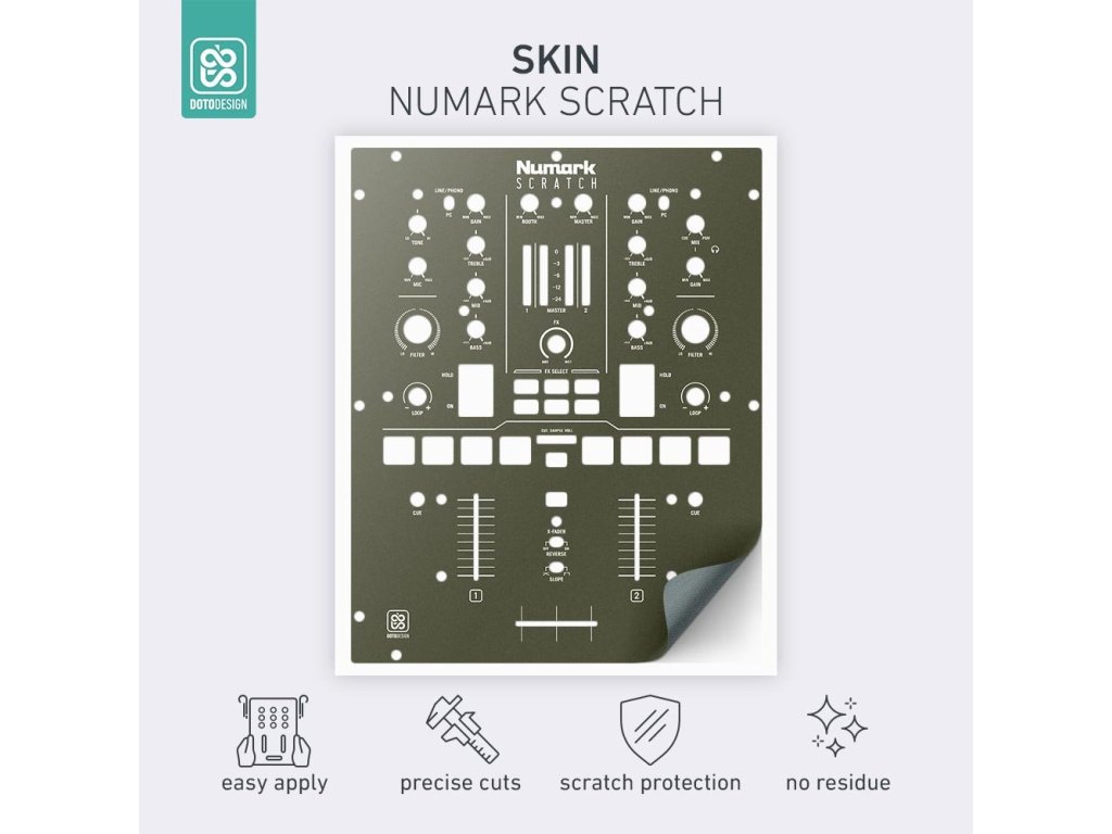 Naklejki Doto Design są idealne do personalizacji wyglądu Twojego sprzętu DJ-skiego (mikserów, gramofonów, odtwarzaczy, kontrolerów). Dostępna jest szeroka gama kolorów i ekskluzywnych wzorów, aby stworzyć niepowtarzalny wygląd. Skórki są precyzyjnie wykonane z materiałów premium, posiadają matową powłokę antyrefleksyjną i chronią Twój sprzęt przed zarysowaniami i zużyciem. Dzięki nowej warstwie adhezyjnej aplikacja jest bardzo prosta, a w przypadku usunięcia skórki na sprzęcie nie pozostaną żadne ślady ani resztki kleju.