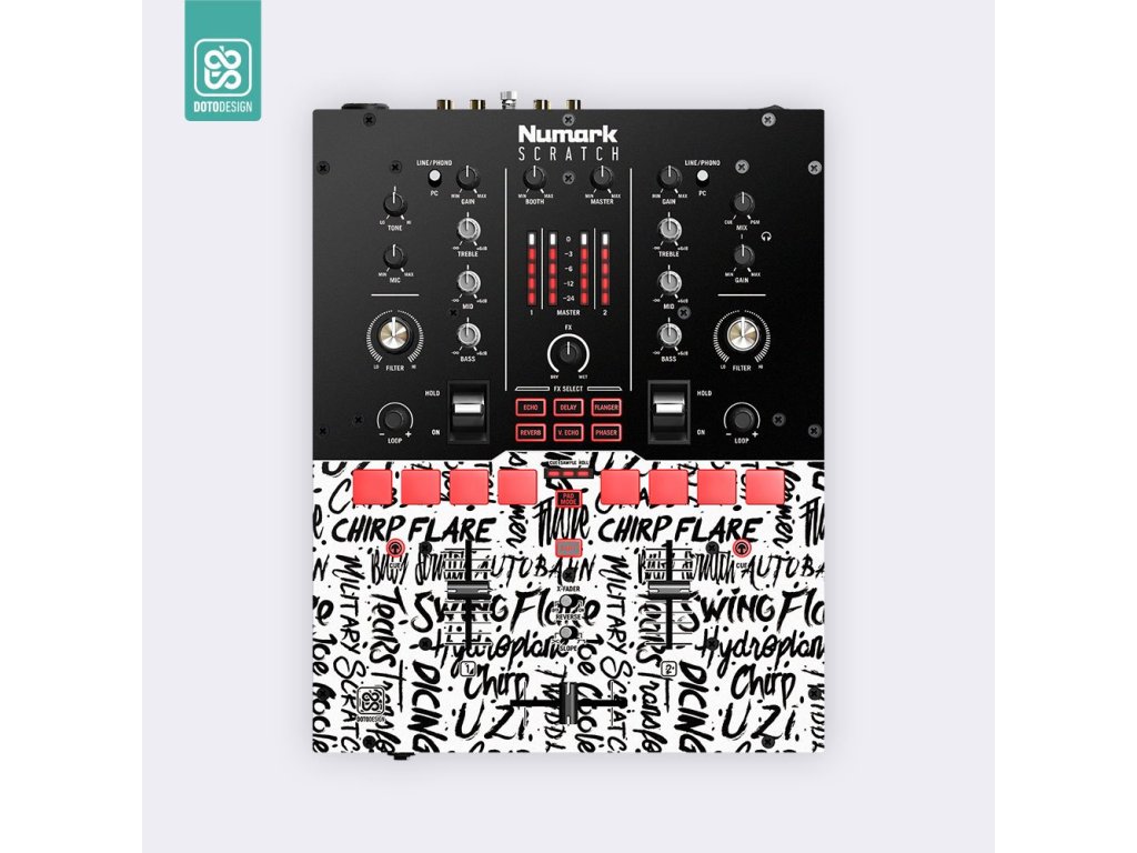 Naklejka na mikser Numark Scratch w wersji SCRATCH STYLE, kolor white (biały).