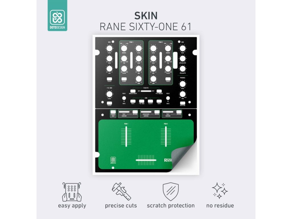 Naklejki Doto Design są idealne do personalizacji wyglądu Twojego sprzętu DJ-skiego (mikserów, gramofonów, odtwarzaczy, kontrolerów). Dostępna jest szeroka gama kolorów i ekskluzywnych wzorów, aby stworzyć niepowtarzalny wygląd. Skórki są precyzyjnie wykonane z materiałów premium, posiadają matową powłokę antyrefleksyjną i chronią Twój sprzęt przed zarysowaniami i zużyciem. Dzięki nowej warstwie adhezyjnej aplikacja jest bardzo prosta, a w przypadku usunięcia skórki na sprzęcie nie pozostaną żadne ślady ani resztki kleju.