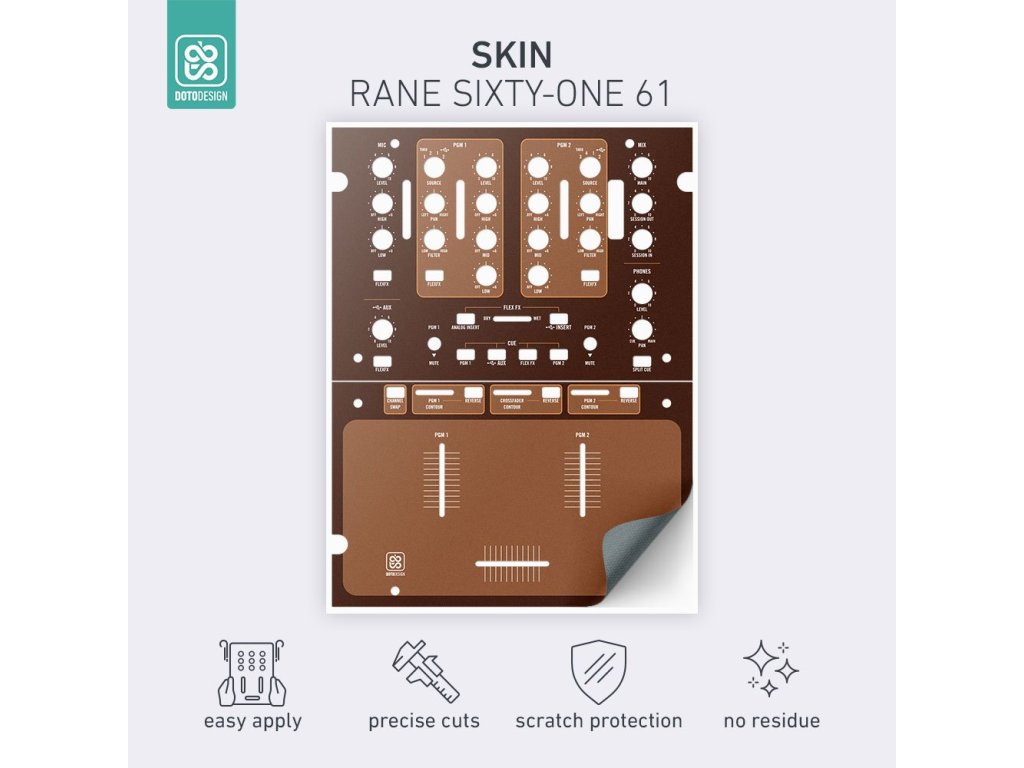 Naklejki Doto Design są idealne do personalizacji wyglądu Twojego sprzętu DJ-skiego (mikserów, gramofonów, odtwarzaczy, kontrolerów). Dostępna jest szeroka gama kolorów i ekskluzywnych wzorów, aby stworzyć niepowtarzalny wygląd. Skórki są precyzyjnie wykonane z materiałów premium, posiadają matową powłokę antyrefleksyjną i chronią Twój sprzęt przed zarysowaniami i zużyciem. Dzięki nowej warstwie adhezyjnej aplikacja jest bardzo prosta, a w przypadku usunięcia skórki na sprzęcie nie pozostaną żadne ślady ani resztki kleju.