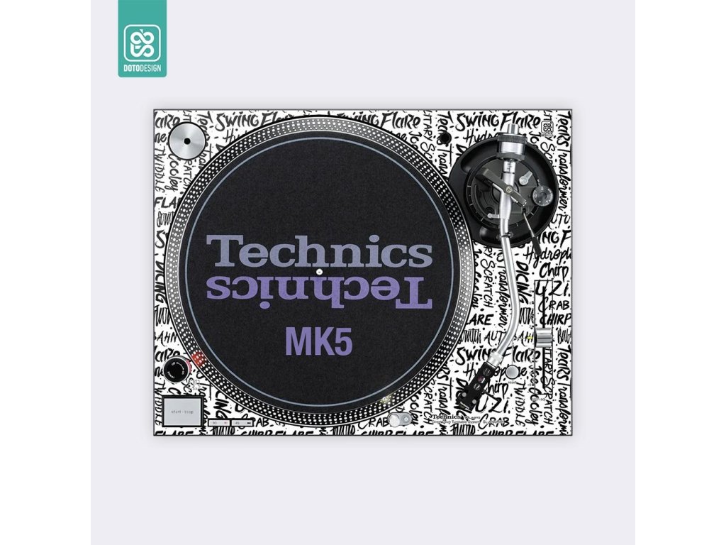 Naklejka na gramofon DJ Technics SL-1200 / 1210 MK5 w stylu SCRATCH STYLE, kolor white (biały).
