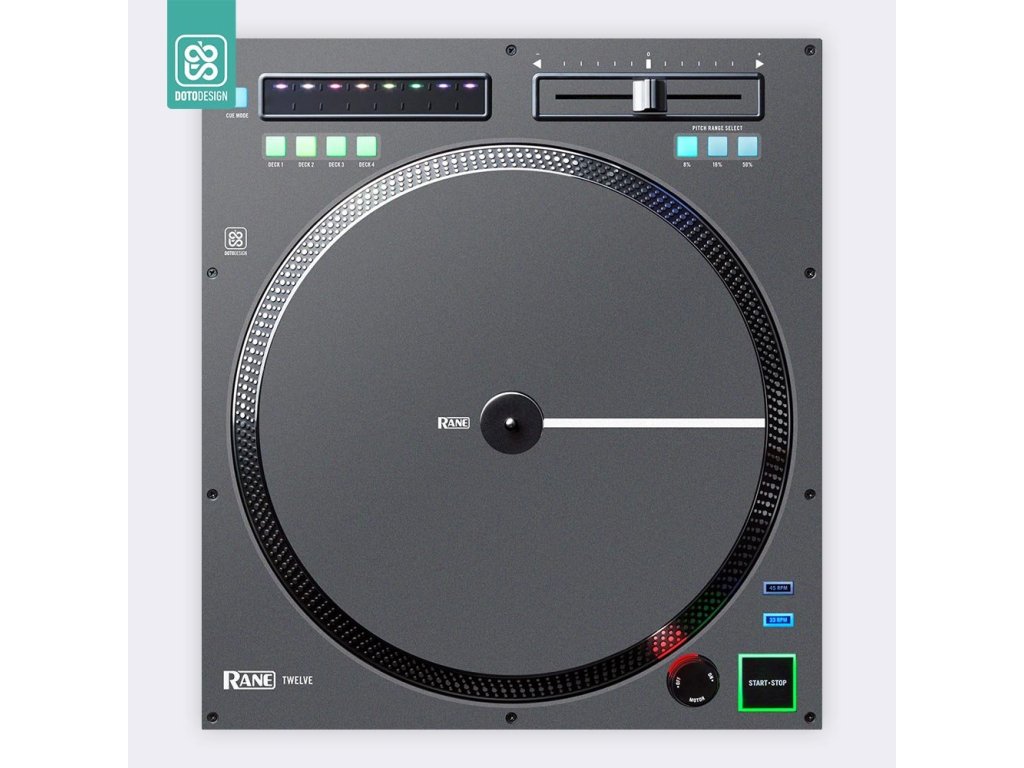 Naklejka na gramofon DJ Rane Twelve w wersji FULL COLORS, kolor graphite grey (grafitowa szarość).