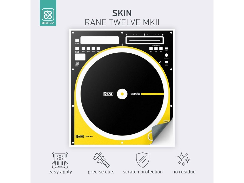 Naklejka na gramofon DJ Rane Twelve MK2 w wersji COLORS DVS, kolor yellow (żółty).