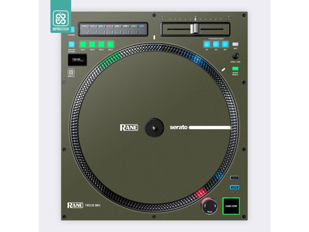 Naklejka na gramofon DJ Rane Twelve MK2 w wersji FULL COLORS, kolor army green (wojskowa zieleń).