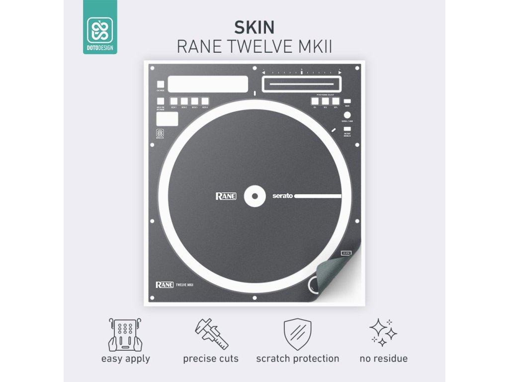Nalepka skin na gramofon DJ Rane Twelve MK2 w wersji FULL COLORS, kolor graphite grey (grafitowa szarość).