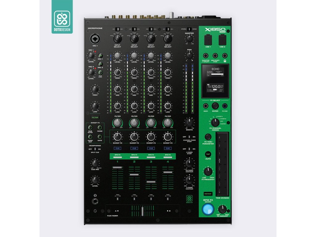 Naklejka na mikser Denon DJ X1850 Prime w wersji FULL COLORS, kolor COLORS DVS, kolor zielony.