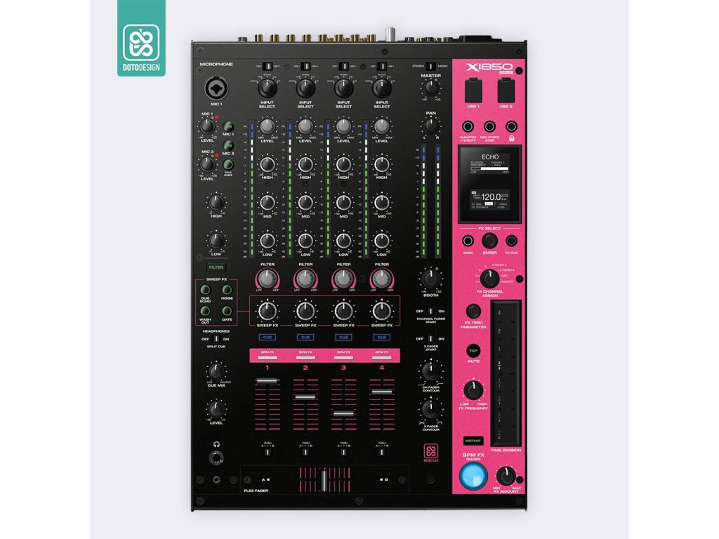 Naklejka na panel mikserski Denon DJ X1850 Prime w wersji FULL COLORS, kolor COLORS DVS, kolor pink (różowy).