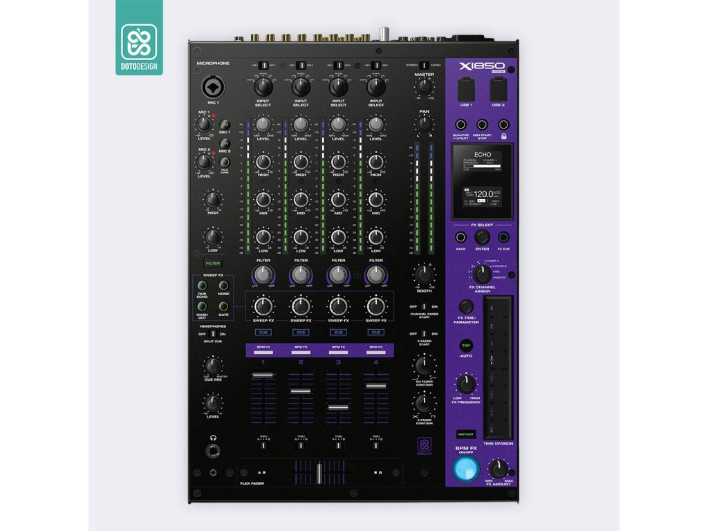 Naklejka na mikser Denon DJ X1850 Prime w wersji FULL COLORS, kolor COLORS DVS, kolor purple (fioletowy).