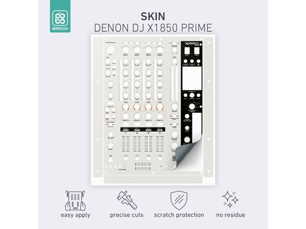 Naklejki Doto Design są idealne do personalizacji wyglądu Twojego sprzętu DJ-skiego (mikserów, gramofonów, odtwarzaczy, kontrolerów). Dostępna jest szeroka gama kolorów i ekskluzywnych wzorów, aby stworzyć niepowtarzalny wygląd. Skórki są precyzyjnie wykonane z materiałów premium, posiadają matową powłokę antyrefleksyjną i chronią Twój sprzęt przed zarysowaniami i zużyciem. Dzięki nowej warstwie adhezyjnej aplikacja jest bardzo prosta, a w przypadku usunięcia skórki na sprzęcie nie pozostaną żadne ślady ani resztki kleju.