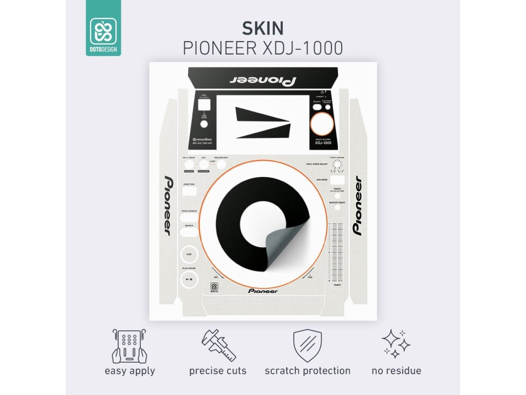 Naklejki Doto Design są idealne do personalizacji wyglądu Twojego sprzętu DJ-skiego (mikserów, gramofonów, odtwarzaczy, kontrolerów). Dostępna jest szeroka gama kolorów i ekskluzywnych wzorów, aby stworzyć niepowtarzalny wygląd. Skórki są precyzyjnie wykonane z materiałów premium, posiadają matową powłokę antyrefleksyjną i chronią Twój sprzęt przed zarysowaniami i zużyciem. Dzięki nowej warstwie adhezyjnej aplikacja jest bardzo prosta, a w przypadku usunięcia skórki na sprzęcie nie pozostaną żadne ślady ani resztki kleju.