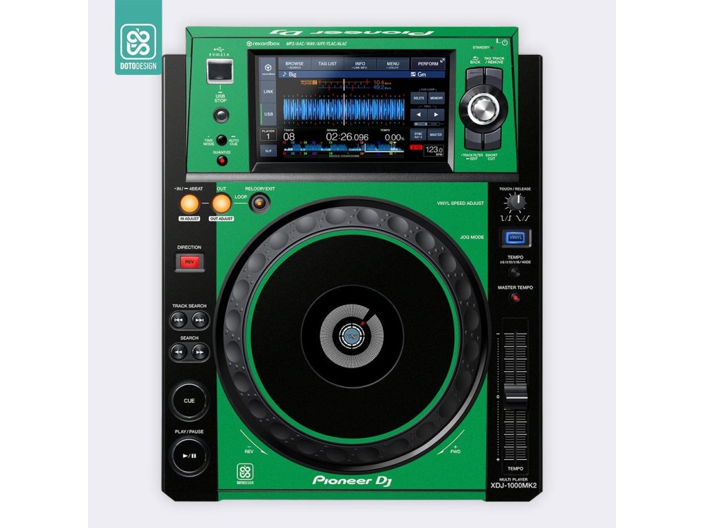 Naklejka na odtwarzacz DJ Pioneer XDJ-1000 MK2 w wersji COLORS DVS, kolor zielony.