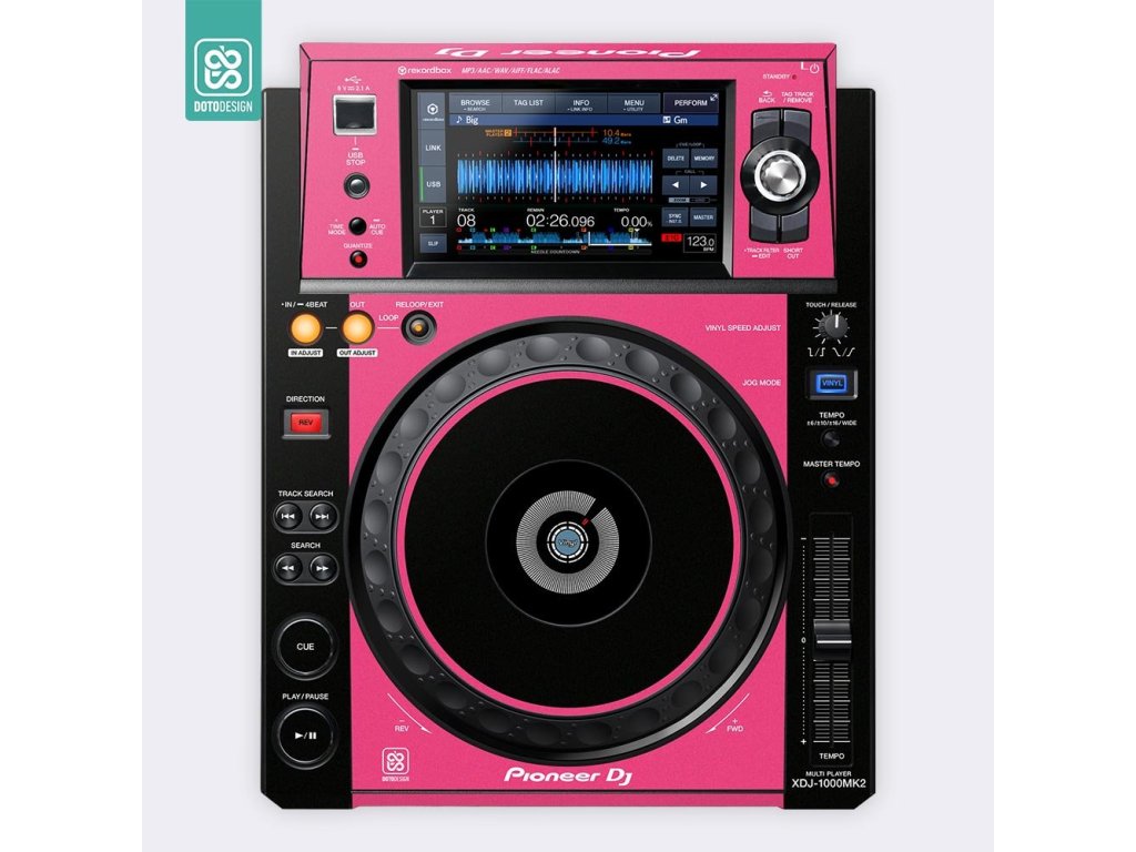 Naklejka na odtwarzacz DJ Pioneer XDJ-1000 MK2 w wersji COLORS DVS, kolor pink (różowy).