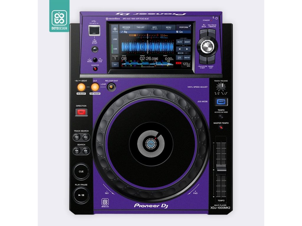 Naklejka na odtwarzacz DJ Pioneer XDJ-1000 MK2 w wersji COLORS DVS, kolor purple (fioletowy).
