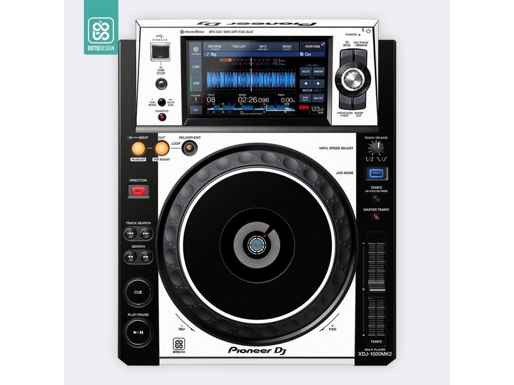 Naklejka na odtwarzacz DJ Pioneer XDJ-1000 MK2 w wersji COLORS DVS, kolor biały.