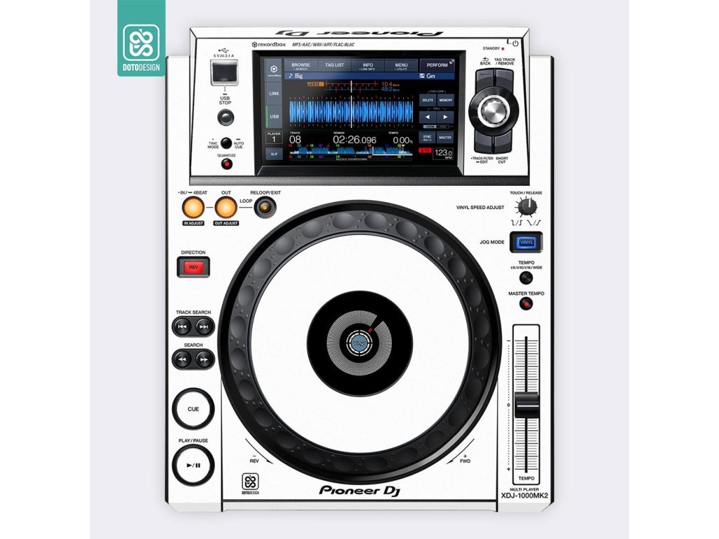 Naklejka na odtwarzacz DJ Pioneer XDJ-1000 MK2 w wersji FULL COLORS, kolor biały.