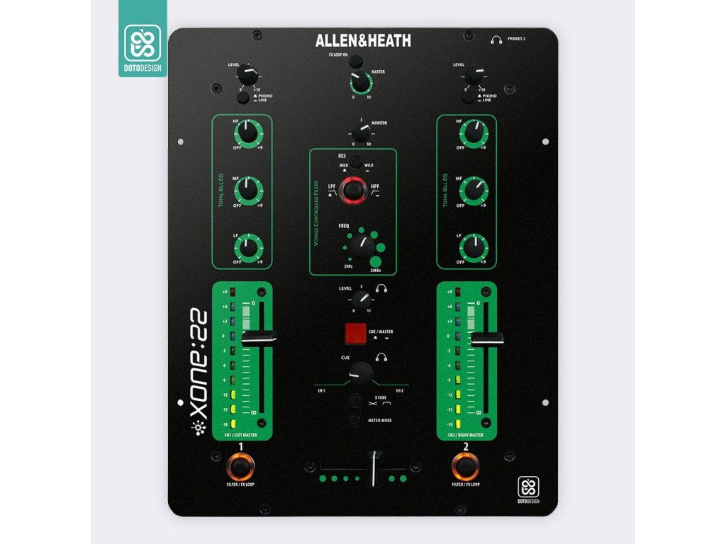 Naklejka na mikser Allen & Heath XONE:22 w wersji COLORS, kolor green (zielony).