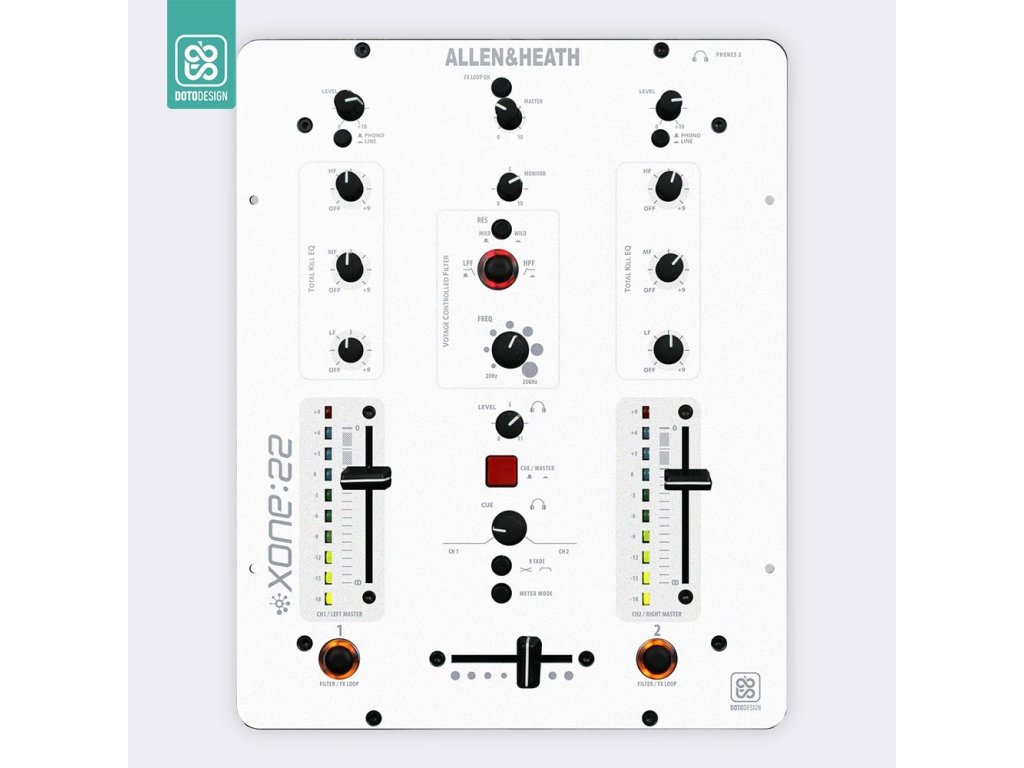 Naklejka na mikser Allen & Heath XONE:22 w wersji DAY & NIGHT, kolor biały.