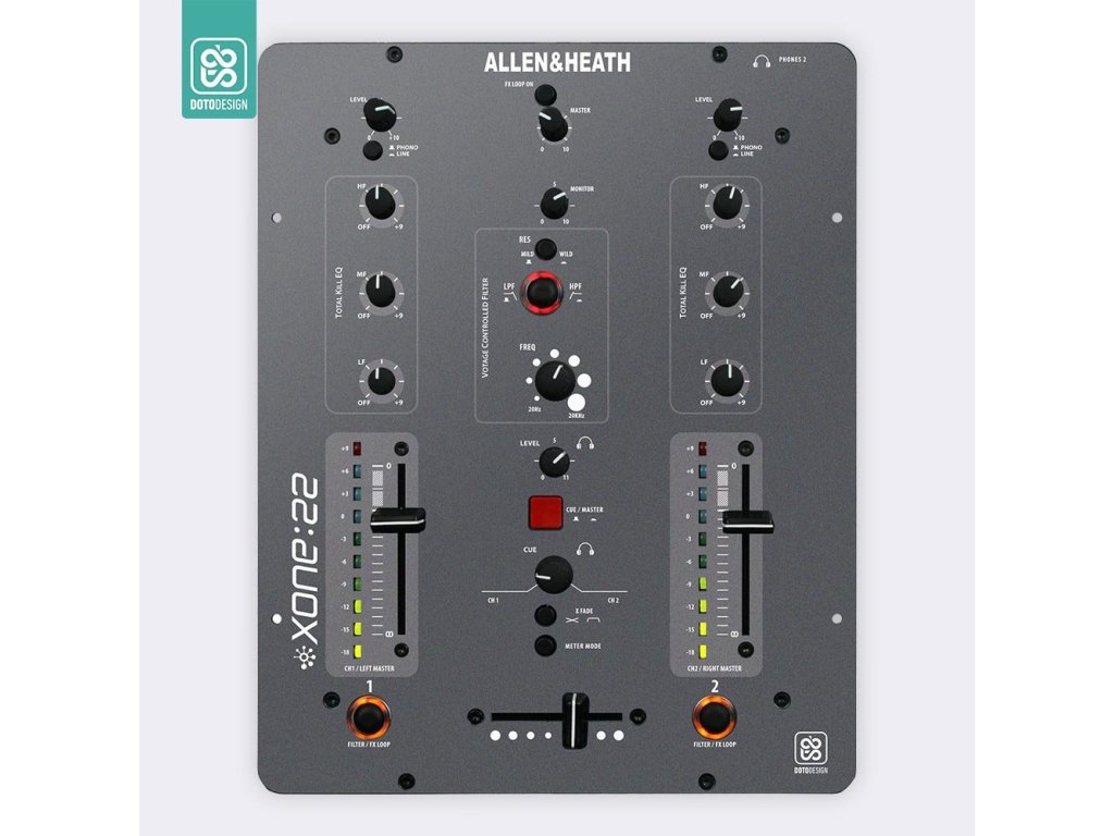 Naklejka na mikser Allen & Heath XONE:22 w wersji FULL COLORS, kolor graphite grey (grafitowa szarość).