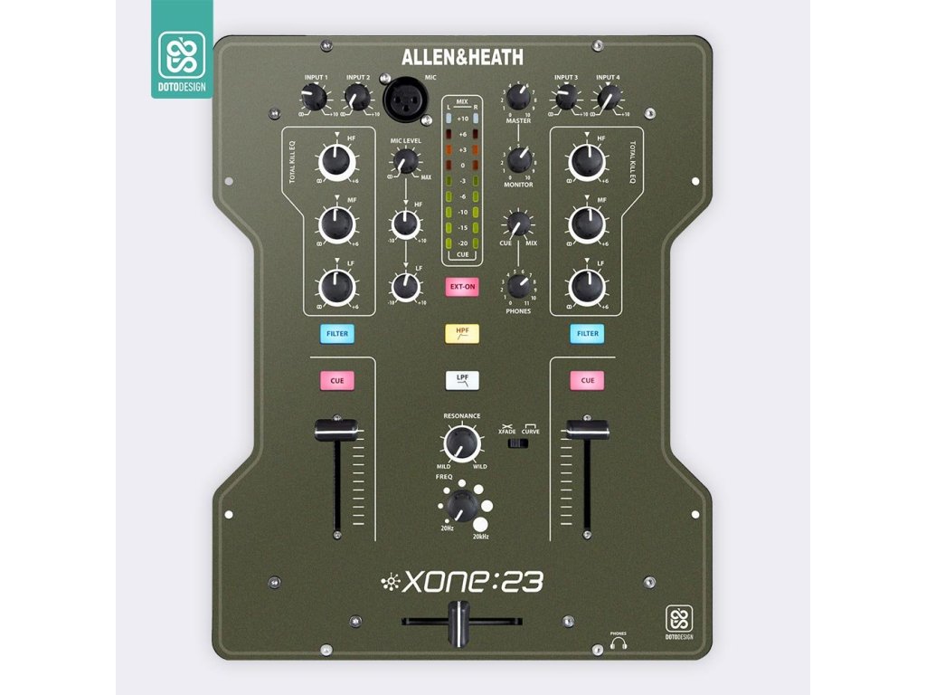 Naklejka na panel mikserski Allen & Heath XONE:23 w wersji FULL COLORS, kolor army green (wojskowa zieleń).