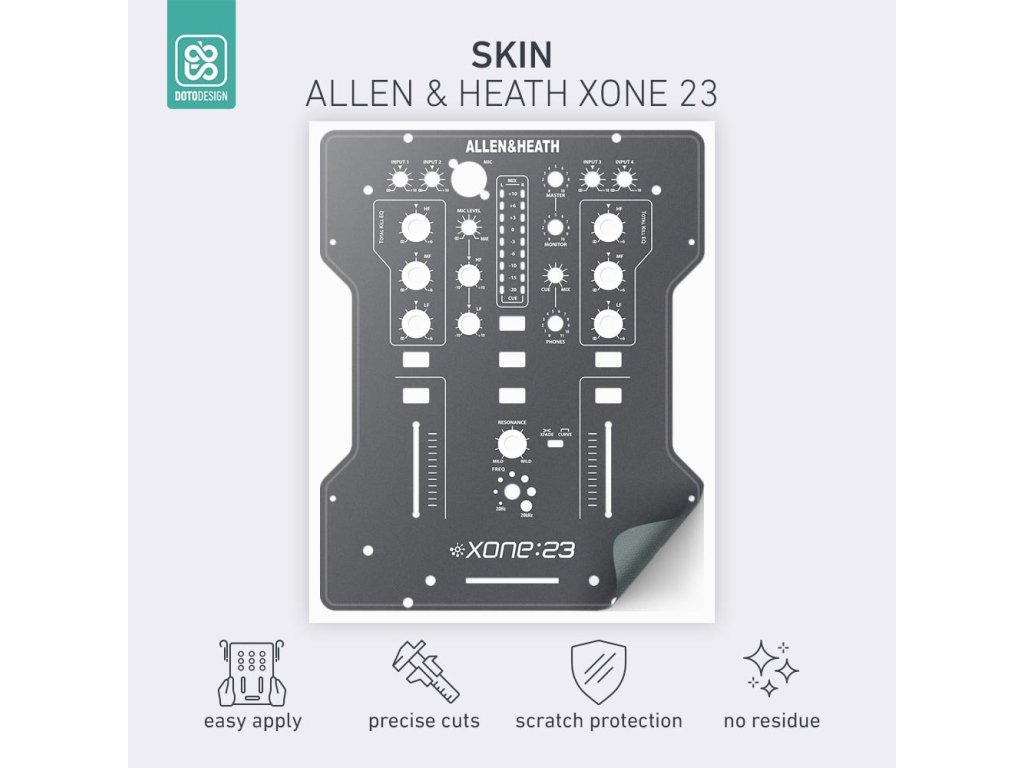 Naklejka na mikser Allen & Heath XONE:23 w wersji FULL COLORS, kolor graphite grey (grafitowa szarość).