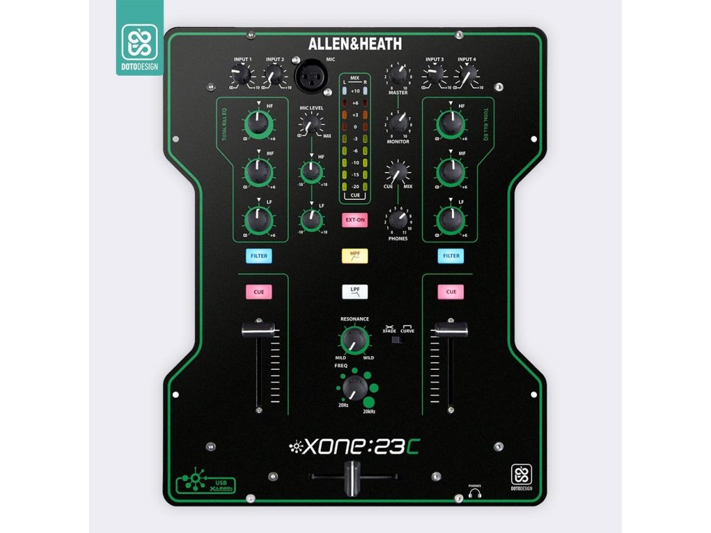 Naklejka na panel mikserski Allen & Heath XONE:23C w wersji COLORS, kolor green (zielony).