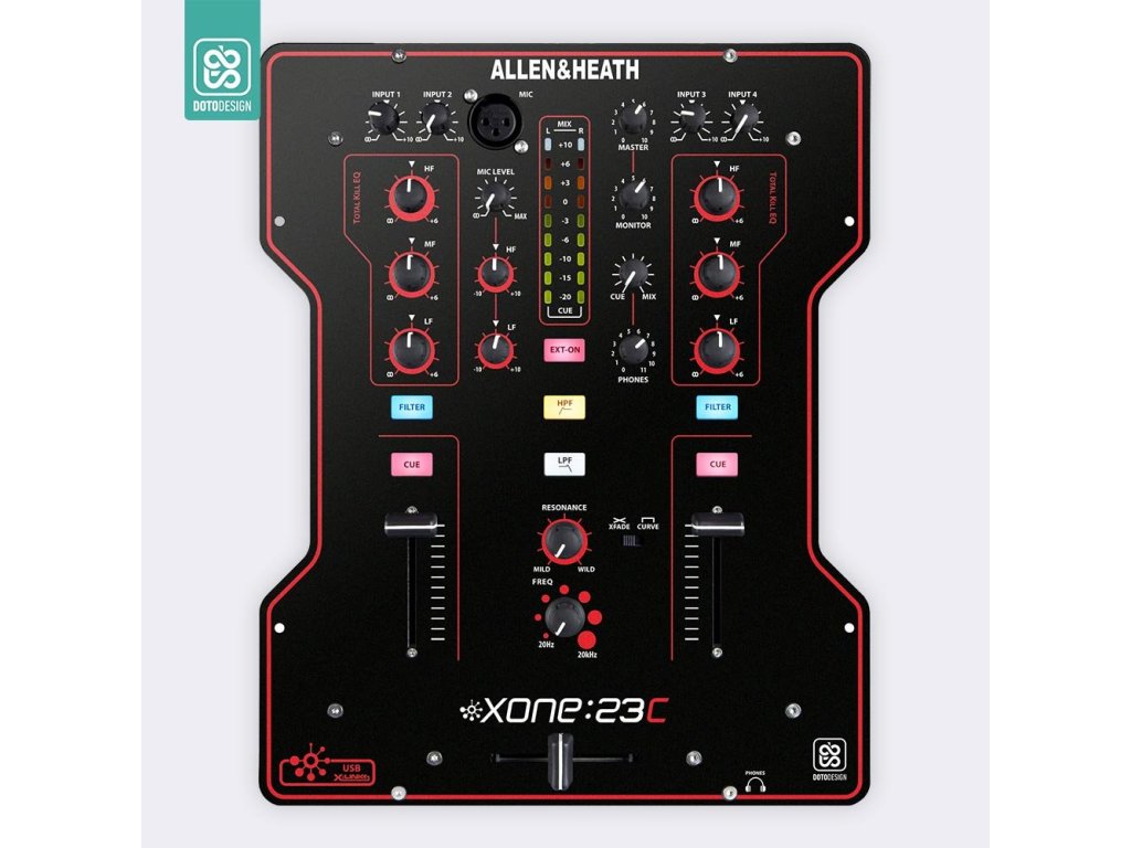 Naklejka na panel mikserski Allen & Heath XONE:23C w wersji COLORS, kolor red (czerwony).