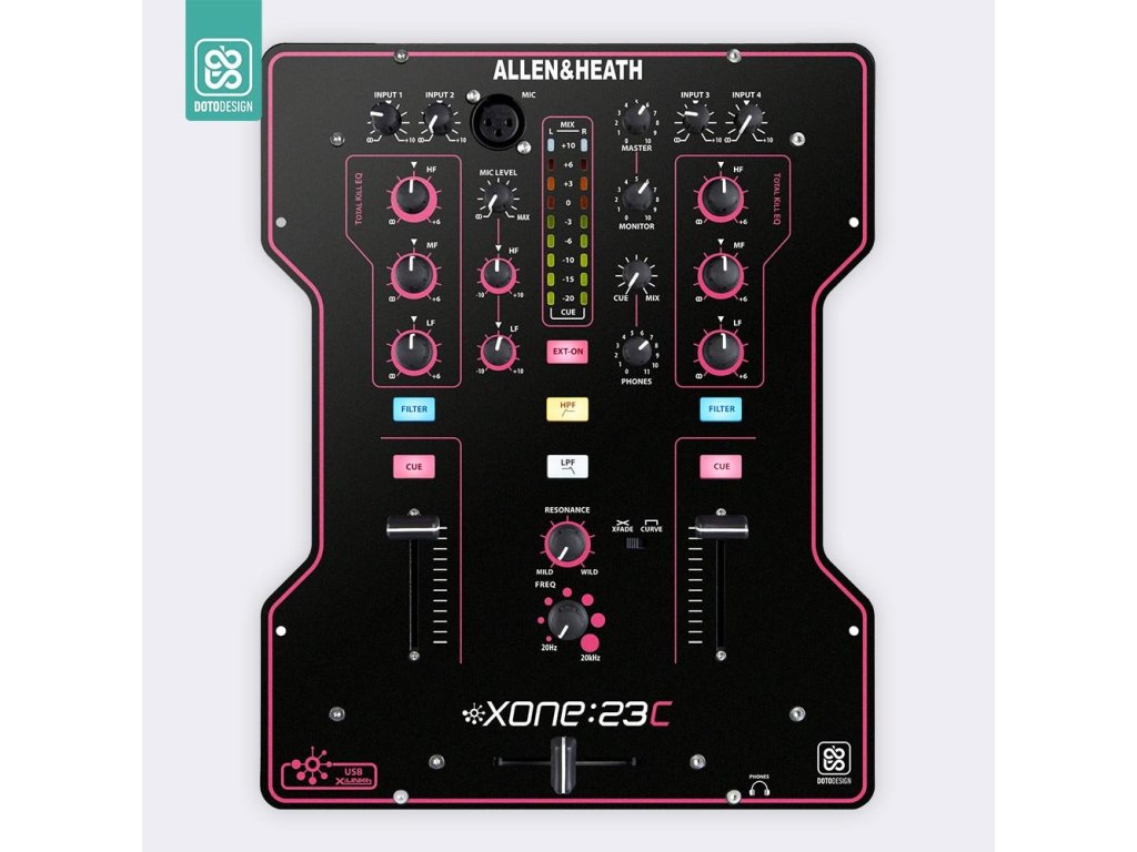 Naklejka na panel mikserski Allen & Heath XONE:23C w wersji COLORS, kolor pink (różowy).