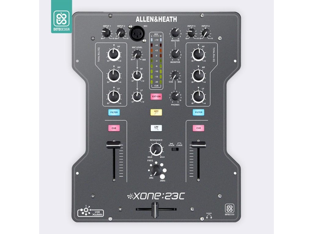 Naklejka na panel mikserski Allen & Heath XONE:23C w wersji FULL COLORS, kolor graphite grey (grafitowy szary).