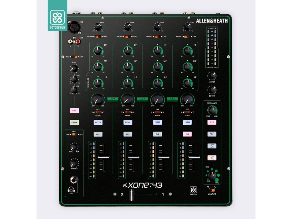 Naklejka na panel mikserski Allen & Heath XONE:43 w wersji COLORS DVS, kolor zielony.
