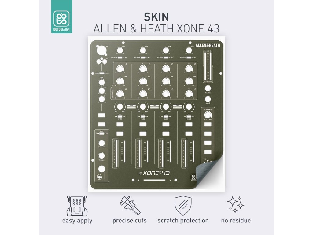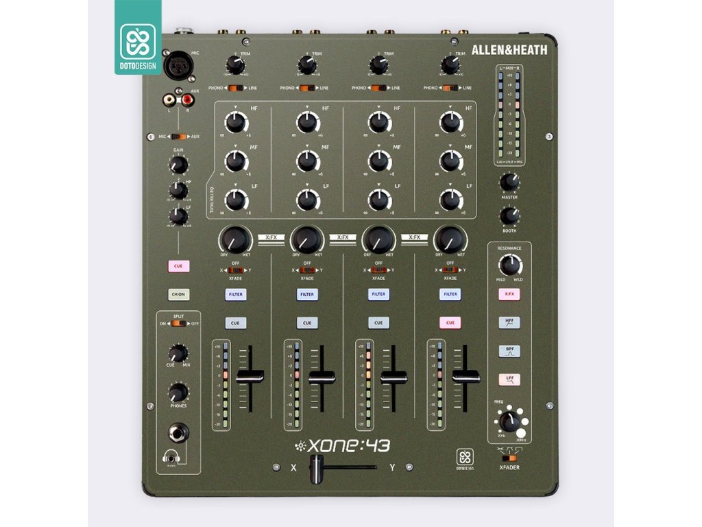 Naklejka na panel mikserski Allen & Heath XONE:43 w wersji FULL COLORS, kolor army green (wojskowy zielony).