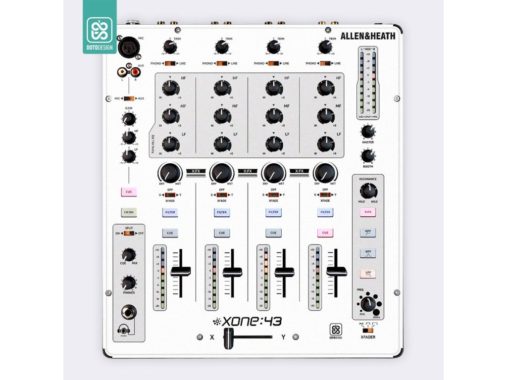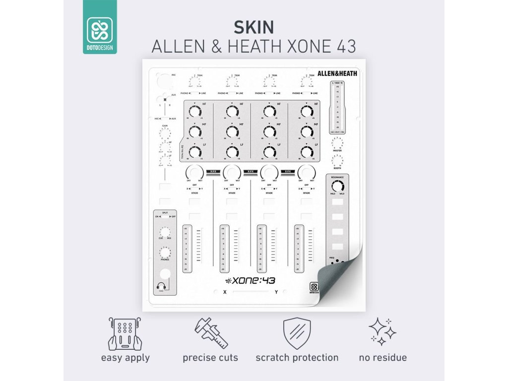 Naklejka na mikser Allen & Heath XONE:43 w wersji FULL COLORS, kolor biały.