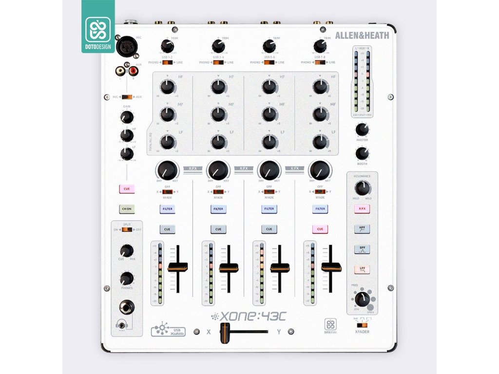 Naklejka na panel mikserski Allen & Heath XONE:43C w wersji DAY & NIGHT, kolor biały.